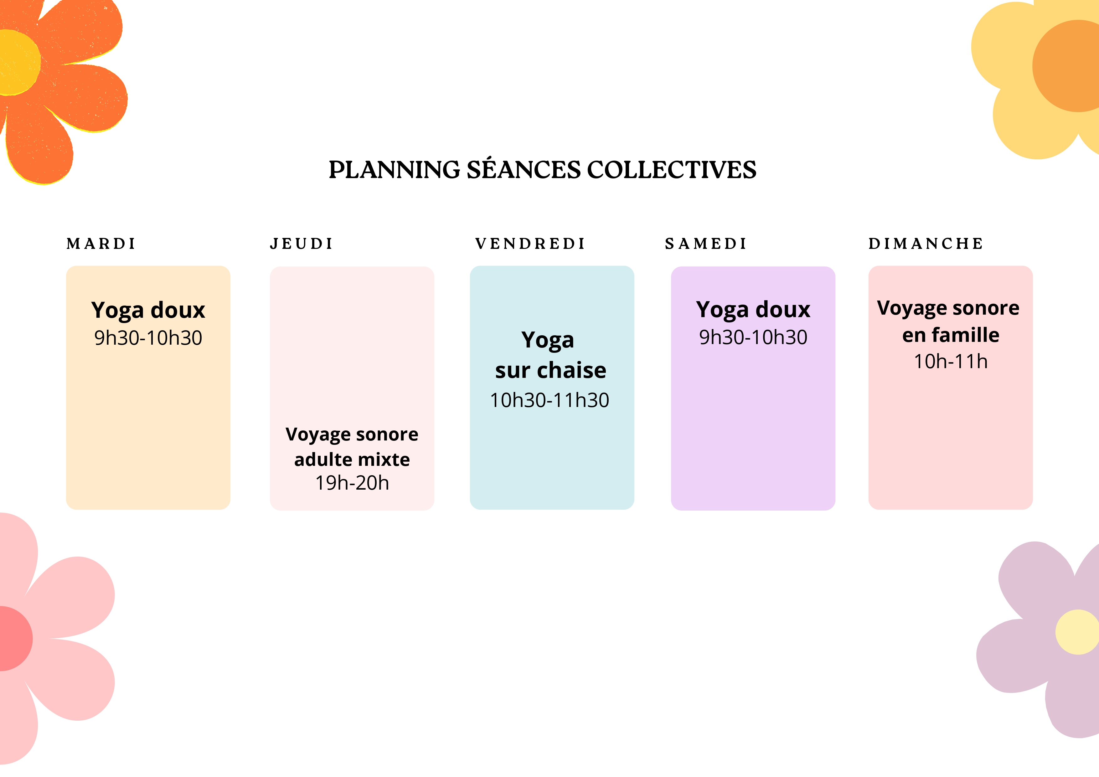 Retrouvez ci-dessous le planning des séances à jour.